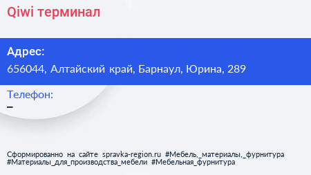 Qiwi, терминал по адресу 656044, Алтайский край, Барнаул, Юрина, 289 в дальнейшем Организация, размещена в следующих категориях: