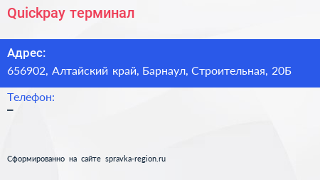 Quickpay, терминал по адресу 656902, Алтайский край, Барнаул, Строительная, 20Б в дальнейшем Организация, размещена в следующих категориях: