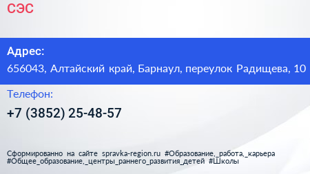 СЭС по адресу 656043, Алтайский край, Барнаул, переулок Радищева, 10 в дальнейшем Организация, размещена в следующих категориях: