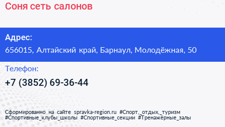 Соня, сеть салонов по адресу 656015, Алтайский край, Барнаул, Молодёжная, 50 в дальнейшем Организация, размещена в следующих категориях: