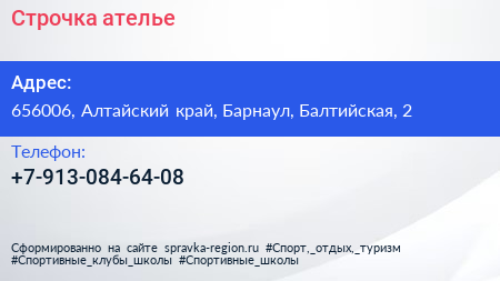 Строчка, ателье по адресу 656006, Алтайский край, Барнаул, Балтийская, 2 в дальнейшем Организация, размещена в следующих категориях: