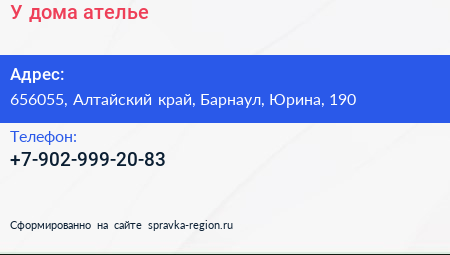 У дома, ателье по адресу 656055, Алтайский край, Барнаул, Юрина, 190 в дальнейшем Организация, размещена в следующих категориях: