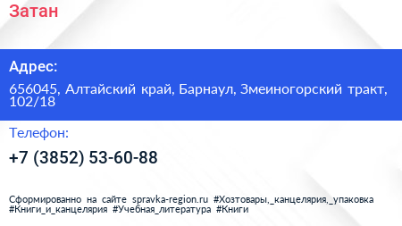 Затан по адресу 656045, Алтайский край, Барнаул, Змеиногорский тракт, 102/18 в дальнейшем Организация, размещена в следующих категориях: