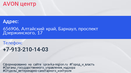 AVON, центр по адресу 656906, Алтайский край, Барнаул, проспект Дзержинского, 17 в дальнейшем Организация, размещена в следующих категориях: