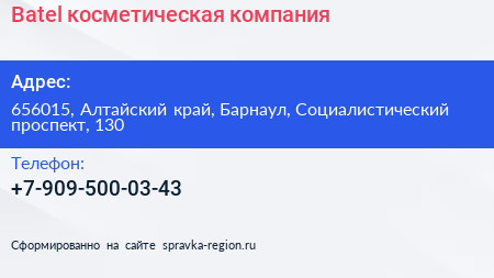 Batel, косметическая компания по адресу 656015, Алтайский край, Барнаул, Социалистический проспект, 130 в дальнейшем Организация, размещена в следующих категориях:
