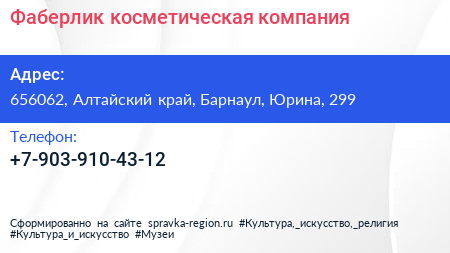 Фаберлик, косметическая компания по адресу 656062, Алтайский край, Барнаул, Юрина, 299 в дальнейшем Организация, размещена в следующих категориях:
