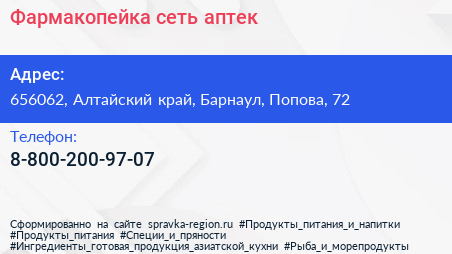 Фармакопейка, сеть аптек по адресу 656062, Алтайский край, Барнаул, Попова, 72 в дальнейшем Организация, размещена в следующих категориях: