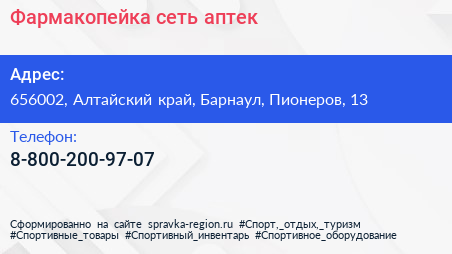 Фармакопейка, сеть аптек по адресу 656002, Алтайский край, Барнаул, Пионеров, 13 в дальнейшем Организация, размещена в следующих категориях: