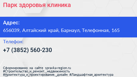 Парк здоровья, клиника по адресу 656039, Алтайский край, Барнаул, Телефонная, 165 в дальнейшем Организация, размещена в следующих категориях: