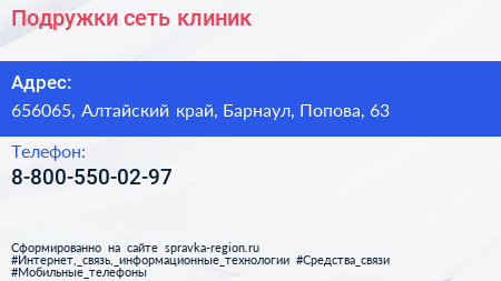 Подружки, сеть клиник по адресу 656065, Алтайский край, Барнаул, Попова, 63 в дальнейшем Организация, размещена в следующих категориях: