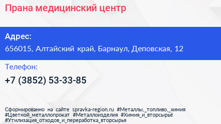 Прана, медицинский центр по адресу 656015, Алтайский край, Барнаул, Деповская, 12 в дальнейшем Организация, размещена в следующих категориях: