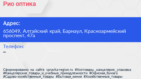 Рио, оптика по адресу 656049, Алтайский край, Барнаул, Красноармейский проспект, 47а в дальнейшем Организация, размещена в следующих категориях: