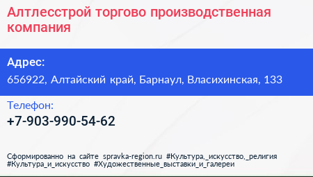 Алтлесстрой, торгово-производственная компания по адресу 656922, Алтайский край, Барнаул, Власихинская, 133 в дальнейшем Организация, размещена в следующих категориях: