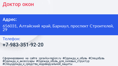 Доктор окон по адресу 656031, Алтайский край, Барнаул, проспект Строителей, 29 в дальнейшем Организация, размещена в следующих категориях:
