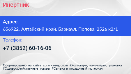 Инертник по адресу 656922, Алтайский край, Барнаул, Попова, 252а к2/1 в дальнейшем Организация, размещена в следующих категориях: