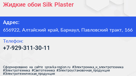 Жидкие обои Silk Plaster по адресу 656922, Алтайский край, Барнаул, Павловский тракт, 166 в дальнейшем Организация, размещена в следующих категориях:
