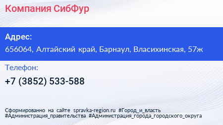 Компания СибФур по адресу 656064, Алтайский край, Барнаул, Власихинская, 57ж в дальнейшем Организация, размещена в следующих категориях: