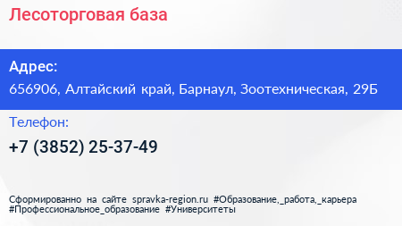 Лесоторговая база по адресу 656906, Алтайский край, Барнаул, Зоотехническая, 29Б в дальнейшем Организация, размещена в следующих категориях: