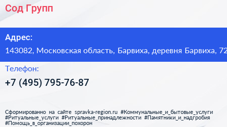 Сод Групп по адресу 143082, Московская область, Барвиха, деревня Барвиха, 72 в дальнейшем Организация, размещена в следующих категориях: