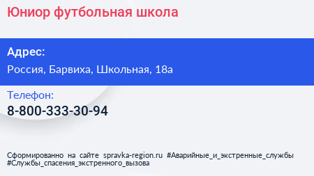 Юниор, футбольная школа по адресу Спортивно-оздоровительный комплекс "Петрово-Дальнее", 18А, Школьная улица, Петрово-Дальнее, городской округ Красногорск, Московская область, Центральный федеральный округ, 143423, Россия в дальнейшем Организация, размещена в следующих категориях: