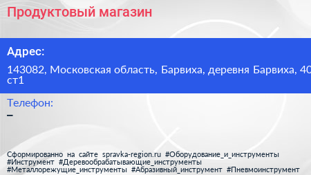 Продуктовый магазин по адресу 143082, Московская область, Барвиха, деревня Барвиха, 40 ст1 в дальнейшем Организация, размещена в следующих категориях: