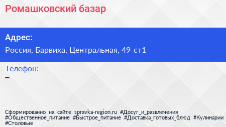 Ромашковский базар по адресу Конноспортивный комплекс "Ромашково", Центральная улица, Ромашково, Одинцовский городской округ, Московская область, Центральный федеральный округ, 143025, Россия в дальнейшем Организация, размещена в следующих категориях: