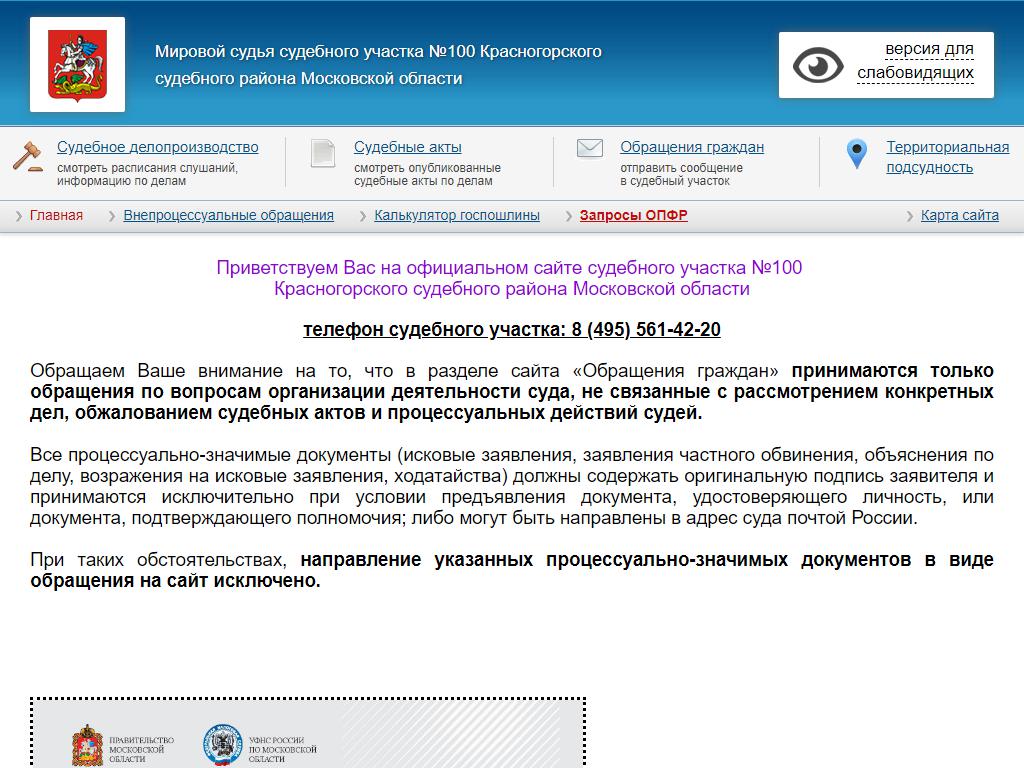 Мировые судьи Красногорского района по адресу 1, Ильинское шоссе, Ильинское, городской округ Красногорск, Московская область, Центральный федеральный округ, 143421, Россия в дальнейшем Организация, размещена в следующих категориях:
