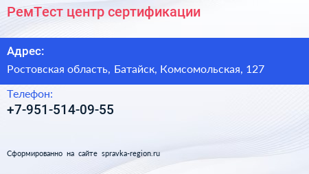 РемТест, центр сертификации по адресу Ростовская область, Батайск, Комсомольская, 127 в дальнейшем Организация, размещена в следующих категориях: