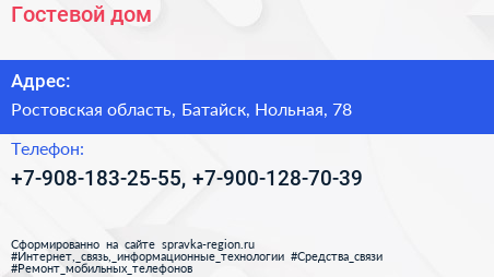 Гостевой дом по адресу Ростовская область, Батайск, Нольная, 78 в дальнейшем Организация, размещена в следующих категориях: