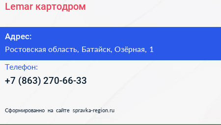 Lemar, картодром по адресу Ростовская область, Батайск, Озёрная, 1 в дальнейшем Организация, размещена в следующих категориях: