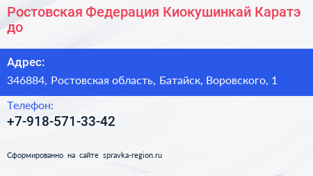 Ростовская Федерация Киокушинкай Каратэ-до по адресу 346884, Ростовская область, Батайск, Воровского, 1 в дальнейшем Организация, размещена в следующих категориях: