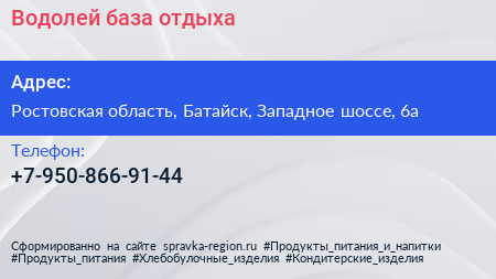 Водолей, база отдыха по адресу Ростовская область, Батайск, Западное шоссе, 6а в дальнейшем Организация, размещена в следующих категориях: