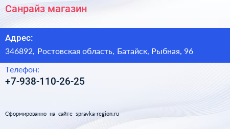 Санрайз, магазин по адресу 346892, Ростовская область, Батайск, Рыбная, 96 в дальнейшем Организация, размещена в следующих категориях: