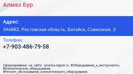 Алмаз-Бур по адресу 346882, Ростовская область, Батайск, Совхозная, 2 в дальнейшем Организация, размещена в следующих категориях: