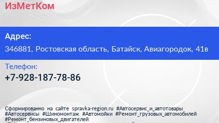 ИзМетКом по адресу 346881, Ростовская область, Батайск, Авиагородок, 41в в дальнейшем Организация, размещена в следующих категориях: