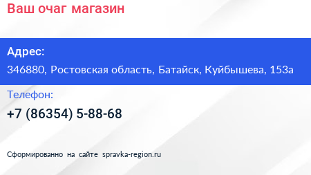 Ваш очаг, магазин по адресу 346880, Ростовская область, Батайск, Куйбышева, 153а в дальнейшем Организация, размещена в следующих категориях: