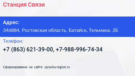 Станция Связи по адресу 346884, Ростовская область, Батайск, Тельмана, 2Б в дальнейшем Организация, размещена в следующих категориях: