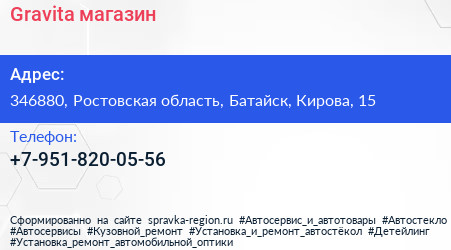 Gravita, магазин по адресу 346880, Ростовская область, Батайск, Кирова, 15 в дальнейшем Организация, размещена в следующих категориях: