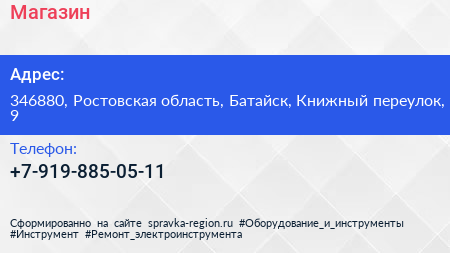 Магазин по адресу 346880, Ростовская область, Батайск, Книжный переулок, 9 в дальнейшем Организация, размещена в следующих категориях: