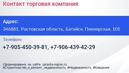 Контакт, торговая компания по адресу 346881, Ростовская область, Батайск, Пионерская, 101 в дальнейшем Организация, размещена в следующих категориях: