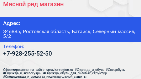 Мясной ряд, магазин по адресу 346885, Ростовская область, Батайск, Северный массив, 5/2 в дальнейшем Организация, размещена в следующих категориях:
