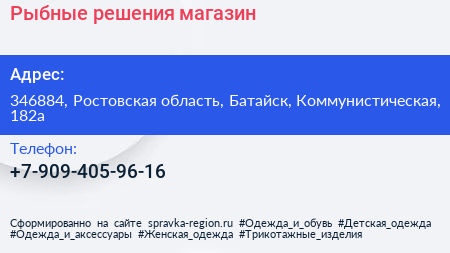 Рыбные решения, магазин по адресу 346884, Ростовская область, Батайск, Коммунистическая, 182а в дальнейшем Организация, размещена в следующих категориях: