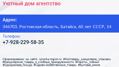 Уютный дом, агентство по адресу 346703, Ростовская область, Батайск, 60 лет СССР, 14 в дальнейшем Организация, размещена в следующих категориях: