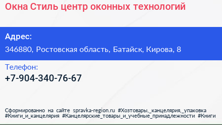 Окна Стиль, центр оконных технологий по адресу 346880, Ростовская область, Батайск, Кирова, 8 в дальнейшем Организация, размещена в следующих категориях: