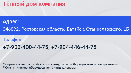 Тёплый дом, компания по адресу 346892, Ростовская область, Батайск, Станиславского, 1Б в дальнейшем Организация, размещена в следующих категориях: