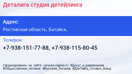 Деталига, студия детейлинга по адресу Ростовская область, Батайск, в дальнейшем Организация, размещена в следующих категориях: