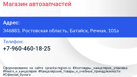 Магазин автозапчастей по адресу 346883, Ростовская область, Батайск, Речная, 101а в дальнейшем Организация, размещена в следующих категориях: