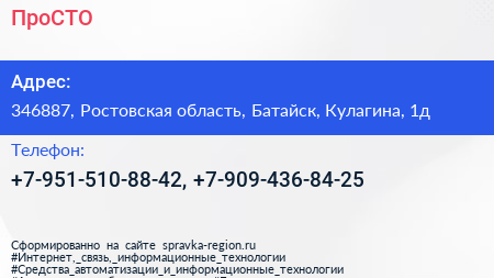 ПроСТО по адресу 346887, Ростовская область, Батайск, Кулагина, 1д в дальнейшем Организация, размещена в следующих категориях: