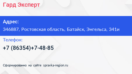 Гард-Эксперт по адресу 346887, Ростовская область, Батайск, Энгельса, 341и в дальнейшем Организация, размещена в следующих категориях: