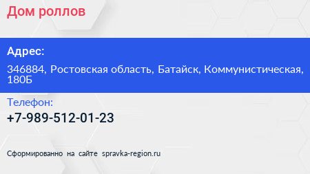 Дом роллов по адресу 346884, Ростовская область, Батайск, Коммунистическая, 180Б в дальнейшем Организация, размещена в следующих категориях: